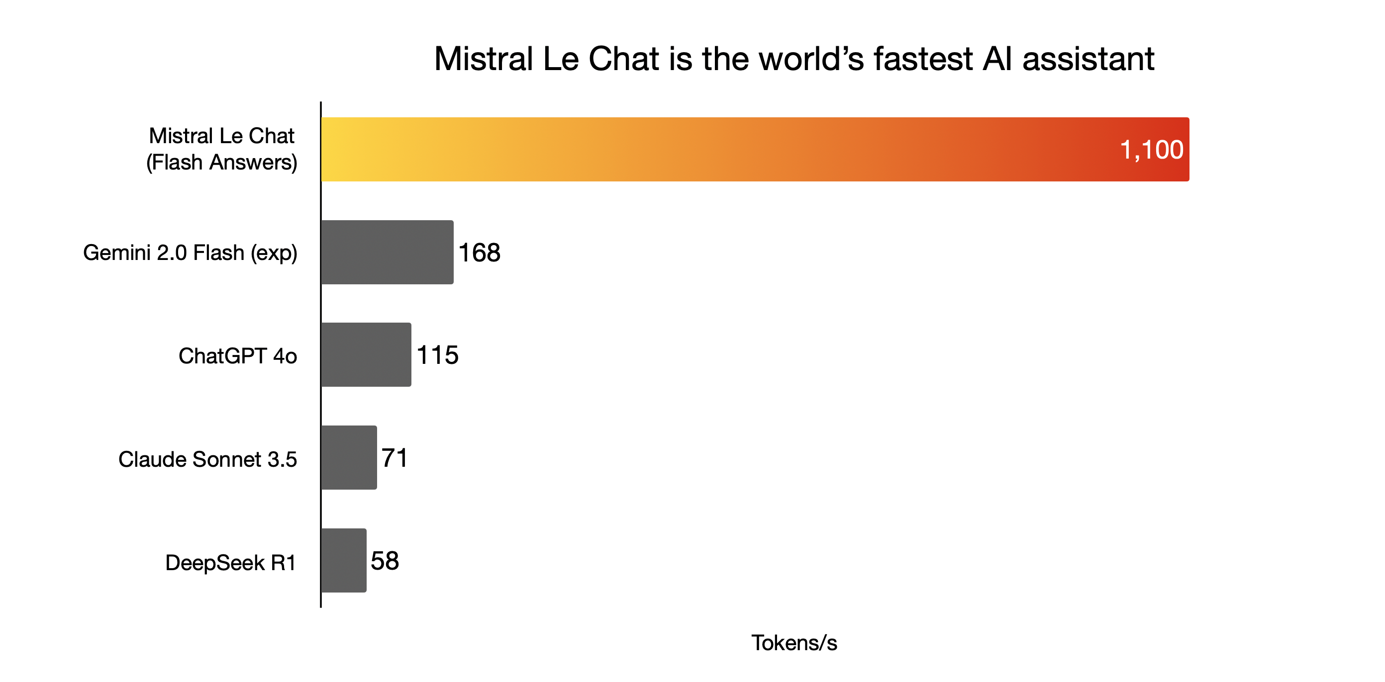 We are excited to announce that Cerebras Inference is now powering Mistral’s Le Chat platform. Cerebras powers Le Chat’s new Flash Answers feature that provides instant responses to user queries. At over 1,100 token/s, Le Chat is 10x faster than popular models such as ChatGPT 4o, Sonnet 3.5, and DeepSeek R1, making it the world’s fastest AI assistant.